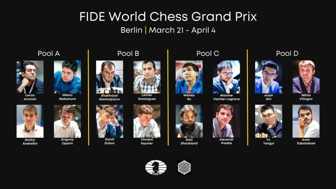 大奖赛第三站比赛将于3月21日至4月4日回归德国柏林。和前两站一样,第三站也是16名棋手参赛,先分成四个小组,进行双巡循环赛,每组第一名出线,晋级半决赛。