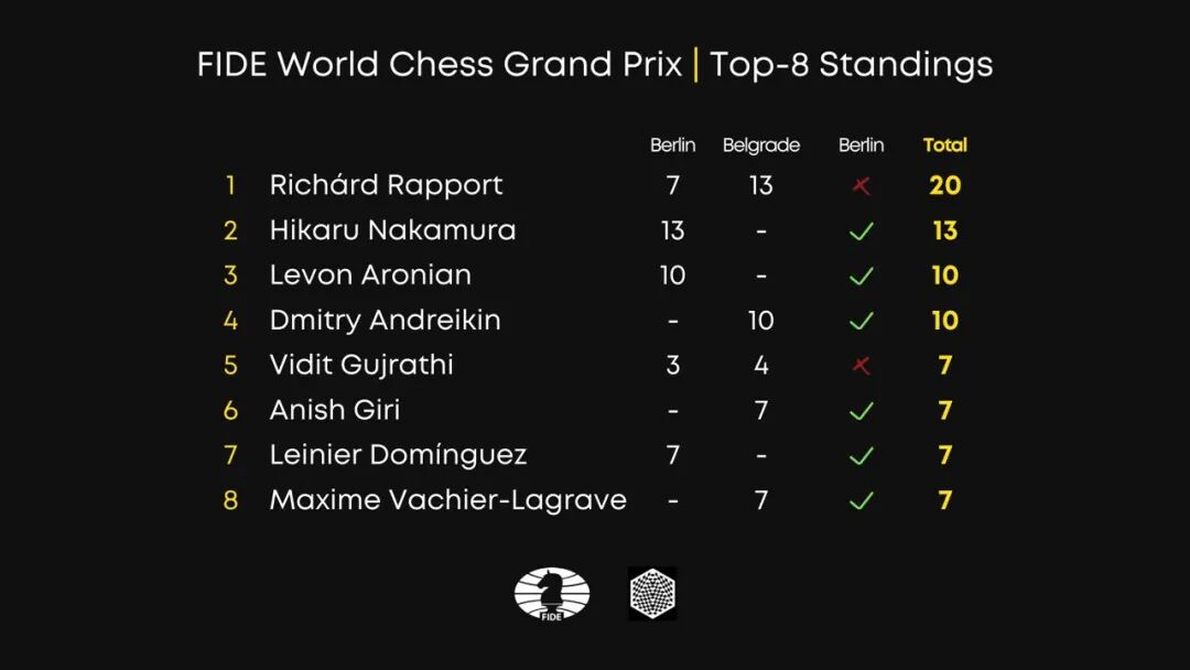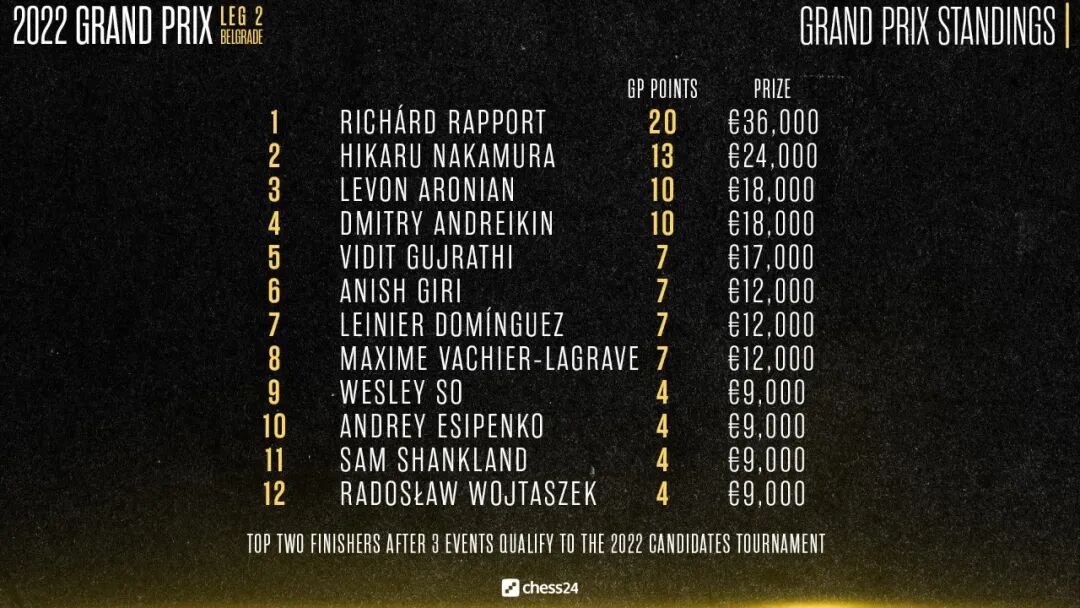 两站大奖赛过后,拉波尔特以总积分20分高居积分榜榜首,很有可能晋级2022世界冠军候选人赛(★2022候选人赛落址马德里)。