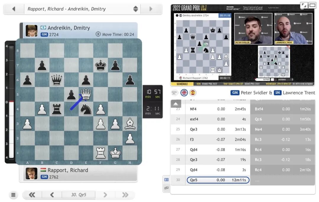 经过小组赛和半决赛的比拼,匈牙利棋手拉波尔特和俄罗斯棋手安德列金以不败战绩杀入决赛。决赛中,两位棋手仍然是分先进行两盘慢棋的较量,如果打成平手将进行快棋加赛。