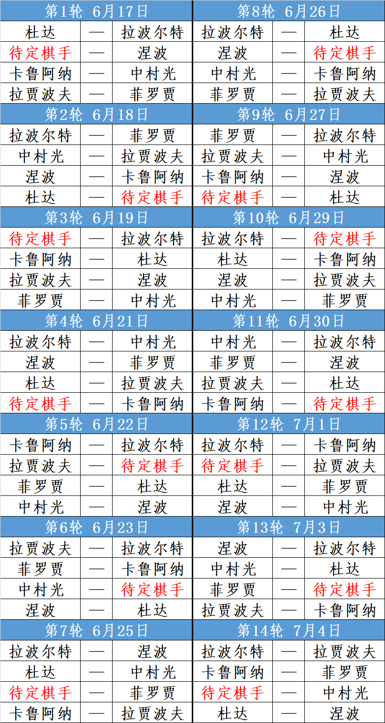 1号-杜达、2号-待定棋手