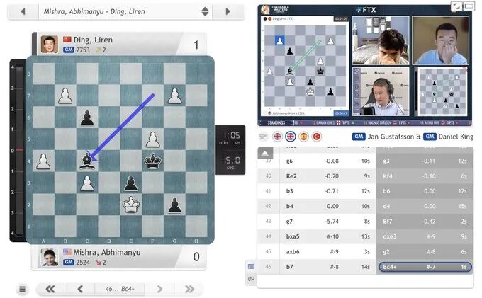 最年轻特级大师,美国印裔棋手米什拉的表现值得一提。首日他取得了2胜2负,暂积6分。其中对第二轮丁立人的那盘棋,前半盘米什拉一度明显优势。但未能把握机会,被经验丰富的丁立人翻盘获胜。第四轮,米什拉击败了阿塞拜疆名将马梅季亚洛夫。