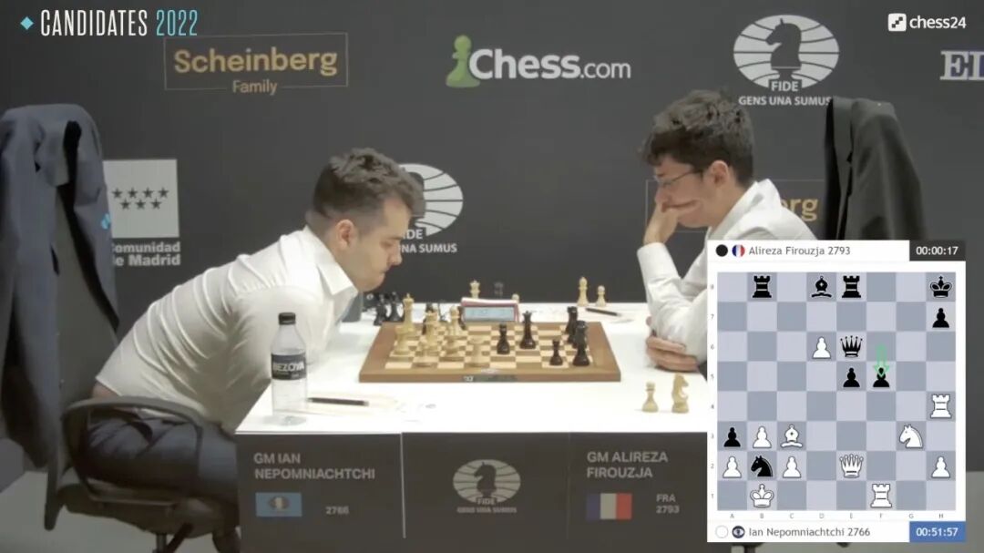 其他三盘棋中,上届候选人赛冠军俄罗斯棋手涅波姆尼亚奇执白在西西里纳道尔夫变例的复杂战斗中火力全开,仅39回合精彩将杀19岁的法国希望之星菲罗贾,迎来开赛以来的第二场胜利。