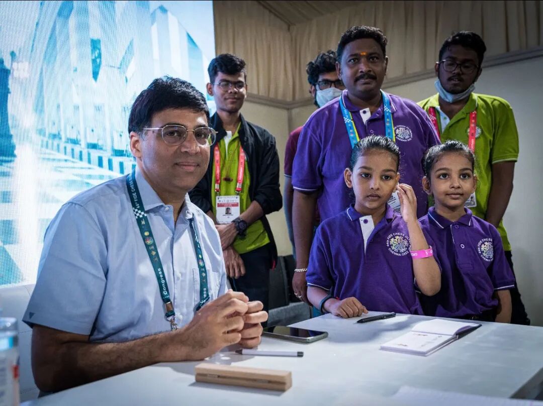 钦奈奥赛第二天,五届世界冠军阿南德为来自印度全国各地的百余名小棋童零距离接触,并回答了孩子们的问题。