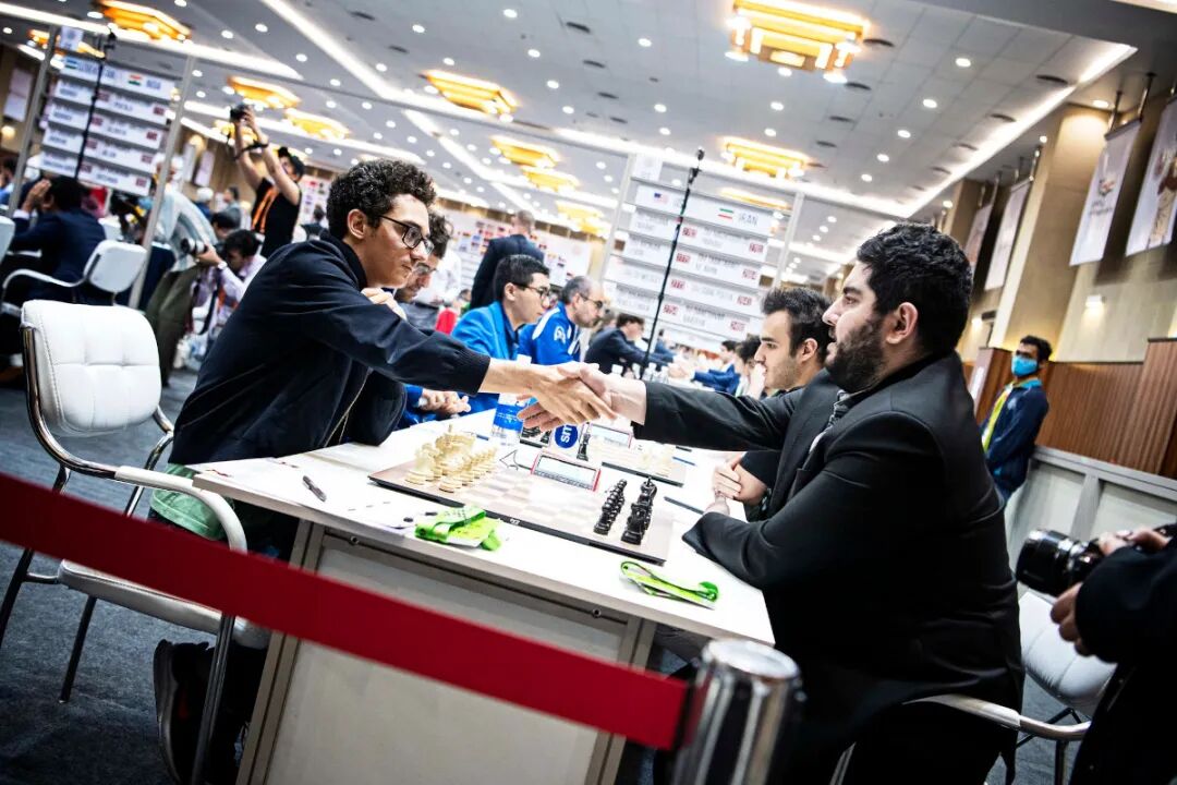 其他比赛中,赛会头号种子美国队今天以2.5比1.5小胜伊朗队。名将卡鲁阿纳立下头功,执白击败马苏德鲁,取得关键一分。美国队五胜一平场分11分,暂列积分榜第二位。