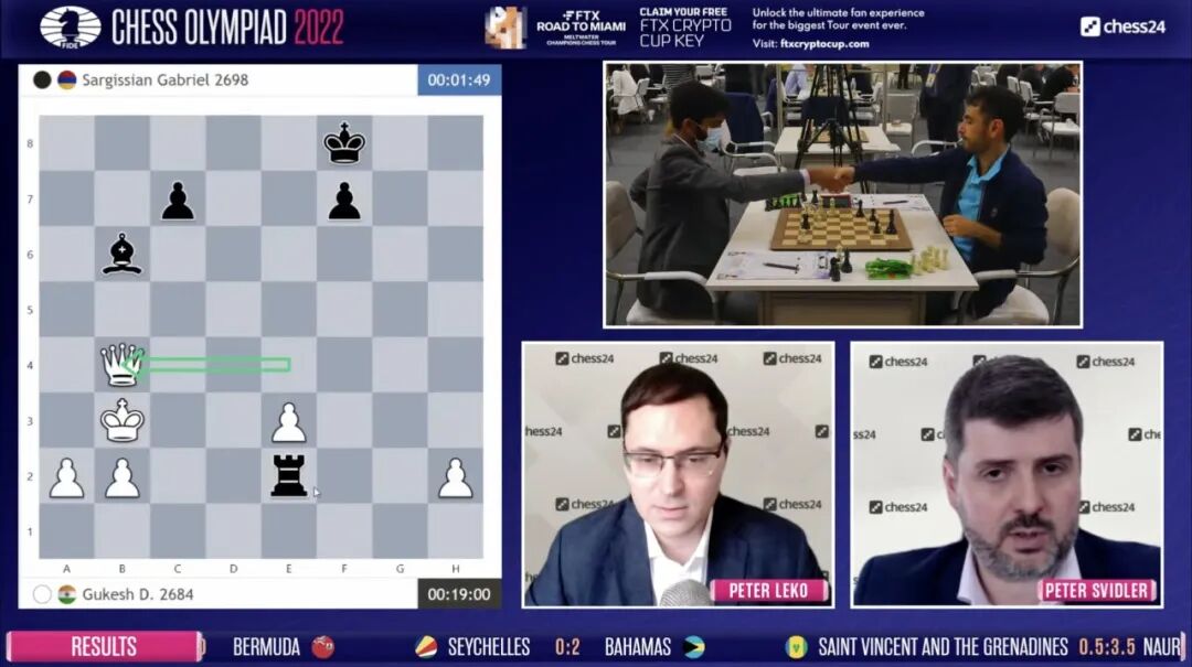 第六轮比赛中,最令人关注的一场比赛,无疑是前五轮同取五连胜的印度二队和亚美尼亚队之间的火拼。一方朝气勃发,势头正旺。一方经验丰富,底蕴深厚。比赛下得非常激烈,四盘棋有三盘分出胜负。