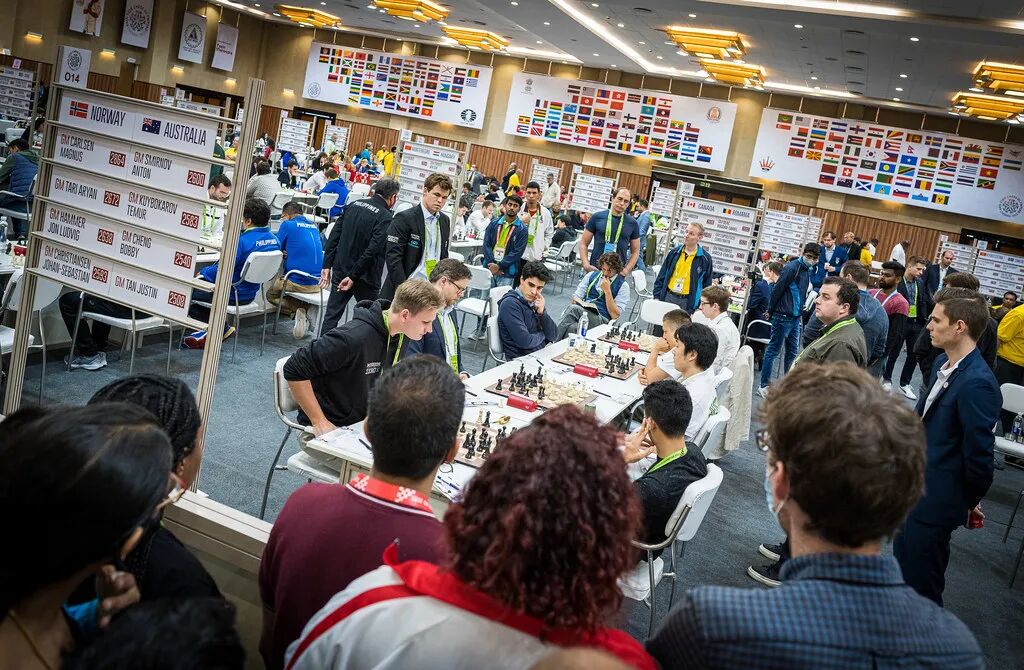 棋王卡尔森率领的三号种子挪威队本轮1.5比2.5负于澳大利亚队。卡尔森执黑战胜斯米尔诺夫,但无力回天。前六轮挪威队仅三胜一平两负,场分7分,排名跌落至第56位。