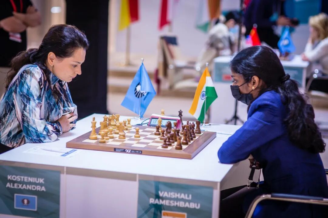积分一直领跑的戈尔亚奇金娜本轮速和东道主棋手阿布杜马利克。另一位俄罗斯棋手科斯坚纽克战胜了印度新秀瓦伊莎丽。