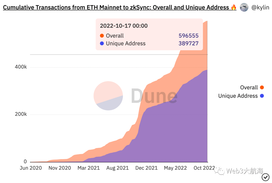 • 他们收购了Prsym Labs。Prysmatic Labs开发并仍在运行计算机软件Prysm ,超过 43% 的以太坊节点使用该软件运行以太坊网络。Stephen Goldfeder 和 Preston Van Loon 在这里谈到了此次收购:怀疑 Arbitrum 收购了 Prysm,因为未来的定序器可以与 Prysm 类似地构建,从而使大多数以太坊验证者可以轻松运行它。如果验证者可以在单个设备上运行 Prysm 客户端,那么他们很可能使用相同的硬件运行以太坊和 Arbitrum 序列器(并获得 Arbitrum Token)。在去年10月,Optimism 的原生代币 OP 已经达到了预期的效果,日常交易也在上升和向右。有超过 150,000 名 OP 持有者。OP 以许多不同的方式分发,但它现在主要用于支持生态系统的增长。Perpetual Protocol 目前在 Optimism 上看到最多的交易,但 Uniswap 和 Velodrome 看到最独特的地址与它们交互。Optimism 和 Arbitrum 的另一个有趣指标是他们在去年的开发者采用率。这些统计数据来自 Alchemy 去年 web3 报告:Arbitrum 和 Optimism 上的 dapps 生态系统自推出以来都有了相当大的增长。截至去年 10 月,在 Arbitrum 的生态系统网站上列出了 280 多个项目,在 Optimism 网站上列出了 200 多个。GMX 已成为所有加密货币中收入最高的 dapp 之一,这表明 L2 原生 dapp 可以获取价值。更难量化的指标是两个社区的实力。我认为 Arbitrum 已经成功地发展了迄今为止所有 L2 中最大的崇拜。看看社区的规模和 Twitter 上的参与度,以及某些本地 dapp(GMX 和 Magic)有自己的铁杆粉丝的事实,Arbitrum 似乎有一个强大的基础可以发展。我认为 Optimism 在社区倡议方面也做得很好。我认为他们前段时间推出的赚取 NFT 的任务执行得很好。非代币公民之家的设计决策是一项伟大的治理举措。Optimism 不久前宣布另一个重大升级:Bedrock。并且他们早前的一篇博文中介绍了“OP Stack ”。OP Stack 不仅是 Rollup 和 Optimistic,还是一个模块化的开源蓝图,适用于各种高度可扩展、高度互操作的区块链。OP Stack 将允许开发人员构建模块化区块链。它是一系列模块,每个组件实现堆栈的特定层:共识、执行和结算。从理论上讲,你可以将以太坊的 DA 层换成 Celestia 并运行比特币作为执行层。一个团队已经使用 OP Stack 构建了一些很酷的东西。OPCraft 在 OP Stack 自定义Rollup上运行。使用了MUD 链上游戏引擎和@optimismFND的 OP Stack,他们构建了一个 3D 自治世界。(https://dev.optimism.io/opcraft-autonomous-world/)如果 OP 链决定共享一个 Sequencer 集,“OP 链”将具有高度兼容性,并且能够利用原子跨链可组合性。对于最终用户来说,这一切都应该只是一个逻辑链:超级链。看比赛会很有趣。Zero-Knowledge Rollups 零知识汇总在2021发生了巨大的变化。我不会在这篇文章中解释零知识证明,但是如果你想要一个很好的资源列表来帮助你理解这项技术,请单击此处。在 2022年 8 月的 ETHSeoul 期间,以太坊联合创始人 Vitalik Buterin 预测 ZK-Rollups 将赢得与 Optimistic Rollups 的第 2 层扩展战。该图像是一个简化的生态系统,仅 ZkSync 就有超过 100 个 dapps 构建。我说的是 Argent 的移动应用程序,它允许任何人从他们的手机创建一个 zkSync 钱包,快速、廉价地使用 DeFi,同时具有以太坊的安全保证,同时使用出色的 UI/UX 导航。加密原著民习惯的所有复杂性都被抽象到后台。帐户抽象(Account abstraction,简称:AA)将改变人们进入加密货币和交易的方式。StarkNet 和 zkSync 都支持它。下面的线程解释了 AA 的优势。简单来说:更好的用户体验、更高的安全性、更大的灵活性,以及更多。助记词将成为过去式。zkEVM 曾经被认为是几年后的事情,但现在 zkSync 正处于发布 zkSync 2.0 的风口浪尖。他们说这将是第一个完全工作的端到端的 zkEVM。zkSync 宣布已成功完成里程碑 3:合并证明。通过集成有效性证明,zkSync 2.0 正式成为世界上第一个在公共测试网上运行的 zkEVM。zkEVM 是第一个与以太坊完全兼容的零知识扩展解决方案。它使开发人员可以非常轻松地从与 EVM 兼容的链中迁移他们的 dApp。开发人员可以简单地部署他们现有的智能合约,而无需进行任何额外的更改。我确实认为我们应该减少一些期望,它实际上预计将在今年年底全面推出 alpha。在此之前,任何用户都无法进行外部桥接。Arbitrum 的联合创始人 Steven Goldfeder 分享了他对所描绘的时间线的怀疑。我不知道谁需要听到这个消息,但我要说的是,我们离主网上的第一个zkEVM没有12天的时间,没有任何意义。任何推动这种说法的人都是对社区的一种伤害。