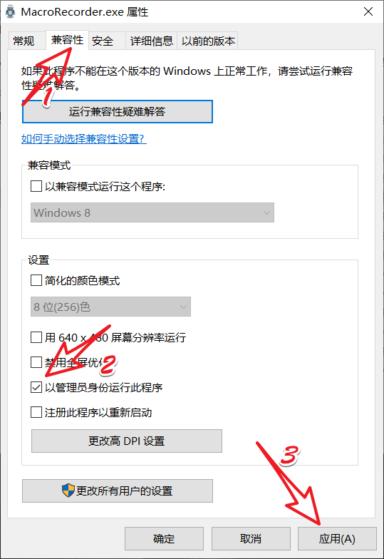 这时候右键exe文件,然后选择属性,在【属性】的界面里,找到【兼容性】,勾选下面的“以管理员身份运行此程序”,最后“应用”,再双击程序即可打开软件。
