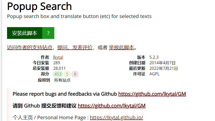 是不是特别方便?另外,这款脚本还支持划词搜索,选择文字后,自动跳出各大搜索引擎选择,大家选择后即可跳转,实在是不要太方便了!