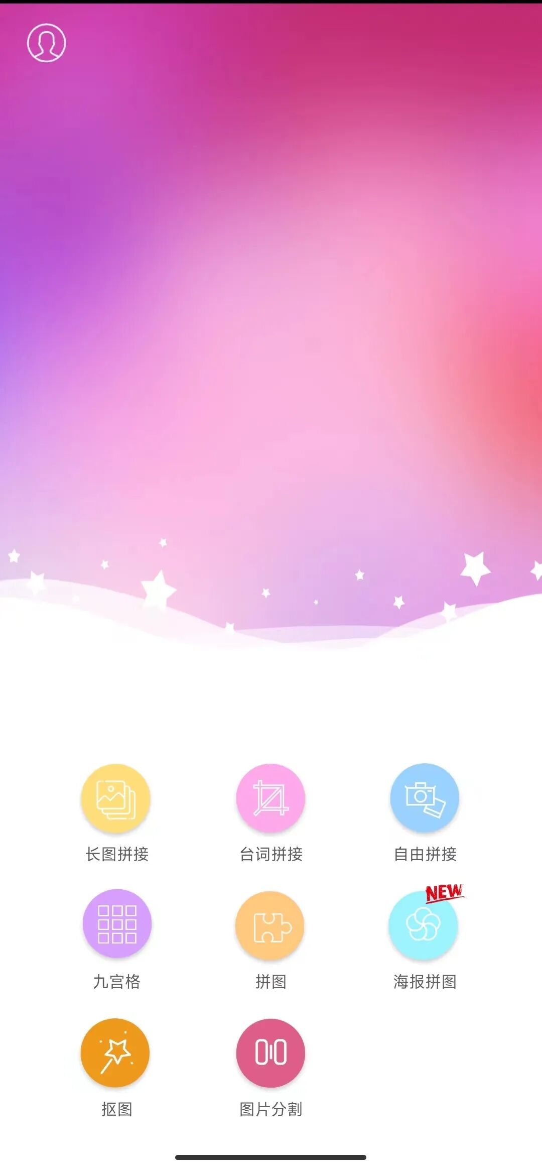 这款软件无广诰无弹窗,如果需要你注册,你直接随便输入名字进行注册。不过我没有碰到注册的情况。长图拼接里左下角可以切换横向还是竖向。除了长图拼接,软件还有台词拼接、自由拼接、九宫格、拼图、海报拼图、抠图和图片分割等等实用的功能。