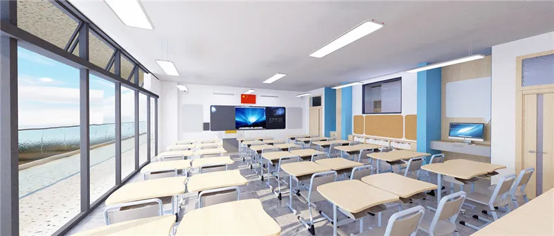 教学楼大厅是该校的“科技大脑”,作为学校的智慧控制中点,其外观似船舵,船舵下方则是智慧控制中心的展示屏,这里设置了VR互动游戏等,让师生一走进教学楼就感受到科技的魅力。而教学楼的外观采用铝板,也与科技感相呼应。