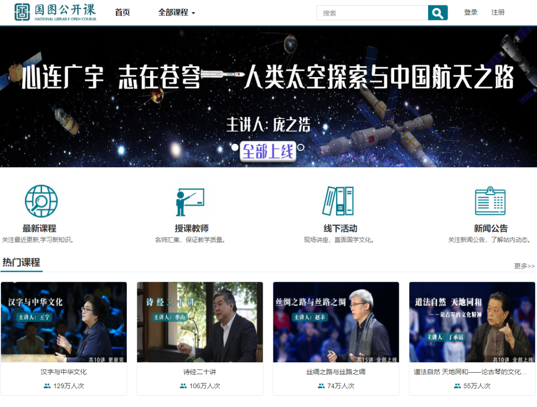 国图公开课整合了国家图书馆在长期实践中积累的数字资源,以精品视频课程为内容、以开放互动为形式,为市民提供在线视频学习服务。
