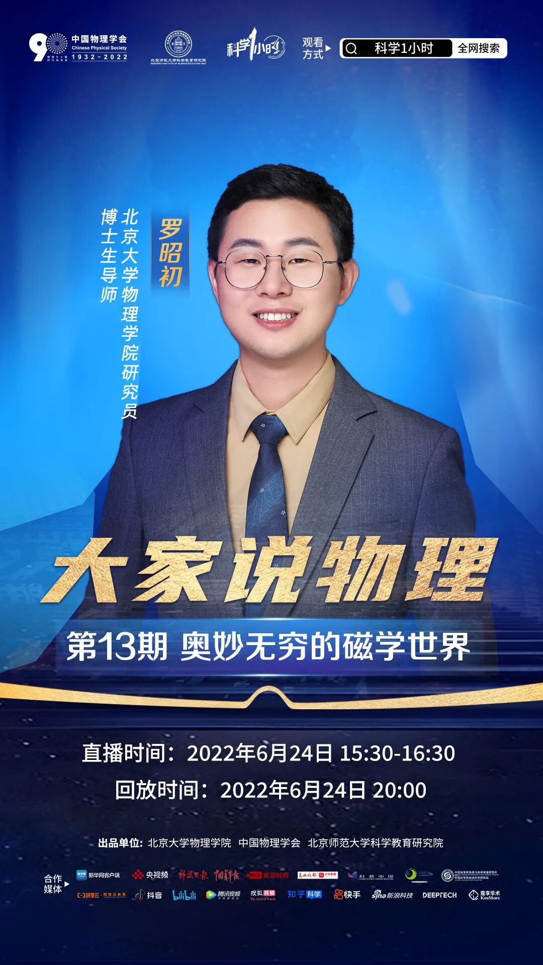 6月24日(周五)下午3:30,在中科院高能物理研究所视频号、中国物理学会新华网客户端、央视频、抖音、B站、钉钉、搜狐视频,中科院物理研究所新浪微博、知乎、微信视频号、快手、B站、搜狐视频等账号,以及科技日报、中国青年报、北京时间app、春城晚报、科普中国、长三角物理研究中心、中科院地质地球所、腾讯视频、新浪科技、Deep Tech、蔻享学术等多家媒体平台与大家准时见面。