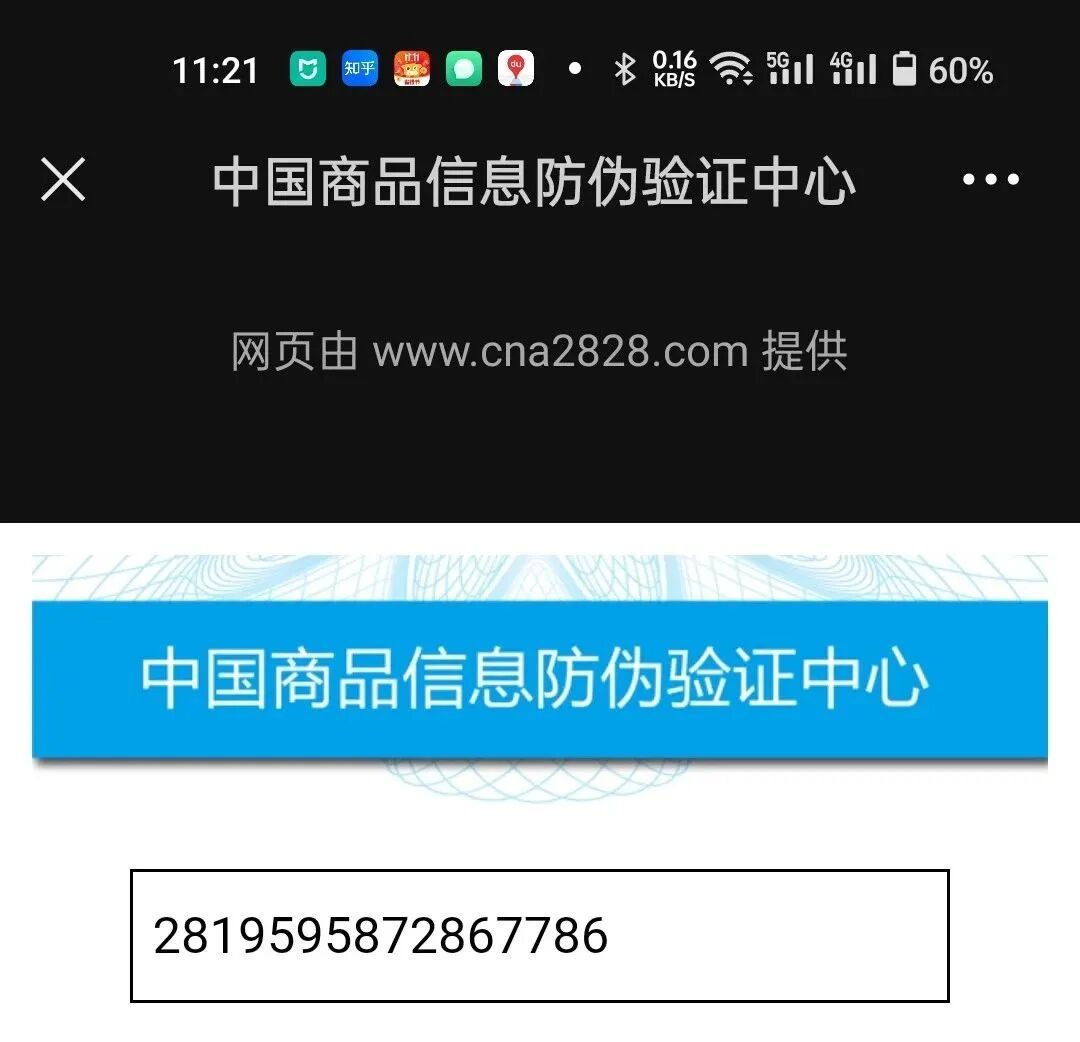 看到这里,大家应该清楚,这个网站显然很“山寨”,但是他必须的资质(基础的网站备案)还是有的,我们可以说这个防伪码网站极其不专业,但不能简单因为贴这个标就说商品是假货。