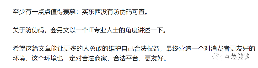但是同样,也不能因为扫出来告诉你正品,就认定是正品,因为你已经知道,这个防伪码系统有非常明显的漏洞。你都不知道买的是保健品还是拖鞋,凭什么一扫悬的一颗心就放下?