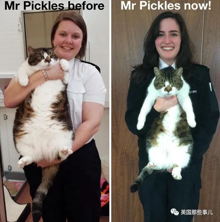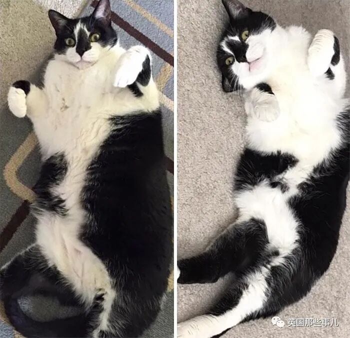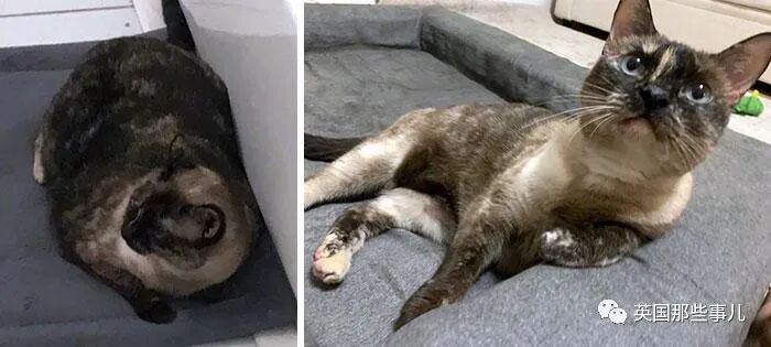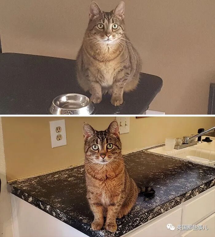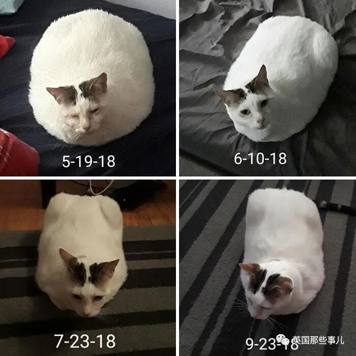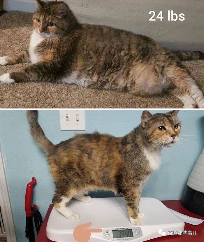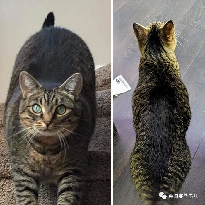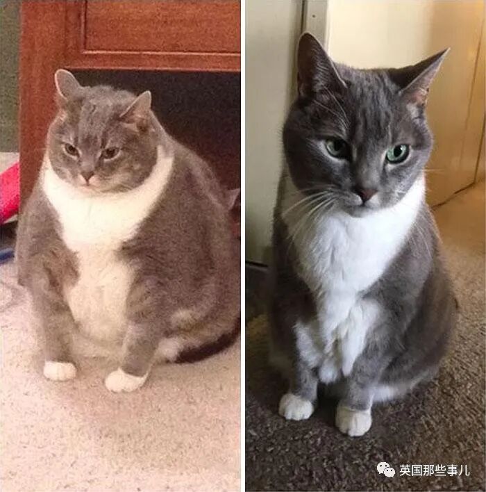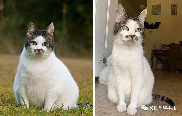 话说,要是有一只胖嘟嘟的猫咪,rua起来自然是更过瘾,但是如果主子太胖,这就像是一颗定时炸弹一样埋在它们的身体中,会引起一系列如糖尿病、高血压、肾脏疾病和癌症等健康问题,生活质量也会随之下降,甚至会缩短它们的寿命....所以真的是为主子着想,铲屎官就应该带着它们一起管住嘴,迈开腿。以下就是一波成功减肥的喵星人对比图,你们感受一下....“一年多前,我把这个大伙伴领回了家,它叫Tony。现在他英俊多了”“来看看Bronson是怎么变健康的吧,刚收养它时它都有15公斤重了,现在减到了9公斤!”“曾经重达18公斤的Barsik住在收容所里。现在他在兽医的监督下调整饮食,体重也稳步下降了。”没错,控制饮食对于要减肥的猫猫来讲是重要的,宠物专家Ernie Ward医生就表示,猫咪减重90%与饮食有关,剩下的10%靠运动。“从9公斤到6公斤,以前他又高又壮,现在他只高不胖!”“对不起女士们,你们能rua的地方少了一些,但我还留了一部分在肚子这哦”“Stan在10岁的时候成功瘦下来了!还有很长的未来在等着他!”“把这只超重的猫咪从收容所接回家,帮他节食带他运动,他现在的体重还不到刚来我家时的一半。”Ward医生建议,每个想给主子减肥的铲屎官都最好和兽医合作,先根据指标评估出猫咪目前的身体状况,然后设定理想的目标体重,并计算出每一餐该喂养的卡路里数量。“就算是每天都给猫咪喂上10粒猫粮,也会让它在一年内涨上快一斤的体重。如果严格执行了节食计划但猫咪的体重还是没有变化,就要寻求兽医的帮助,每三个月调整一次饮食和热量计划。”Ward医生说到。“一直是L号的Weez先生,在经过一年的节食和锻炼后,变成了M,甚至是S号!““她叫Amy,之前因为她太胖了,在收容所待了一年多也没有人要她。正好,我也有这个问题,所以我把她接回家,我们现在一起减肥。现在她的表现很好,已经瘦下来一些。她走路的时候肚子也不拖地了,还总和我们家另外一只猫一起玩!”但是,给猫咪也不是那么容易的事,减肥路途上会有很多意想不到的困难和曲折,如果没有达到目标的话,一定要保持警惕,并继续坚持下去。让超重的猫咪动起来也并非那么困难,激光笔、羽毛掸子或是新的纸箱都会是让猫咪动起来的好帮手,每天三次,每次五分钟,和自家的主子玩一玩就很好了。同时,迷宫食盆可以激发猫咪内在捕食者的天性,垂直的墙面和猫爬架也可以引导猫咪多做一些运动。环境的丰富和保持运动对于猫猫维持身心健康都十分重要,也能让它们维持在一个苗条的体态。“自从医生告诉我我家的猫咪超重后,我就让她开始节食,她现在看上去比以前健康多了”“我家的宝宝可真值得我骄傲!以前他的呼吸都十分沉重,现在他又变回一个精力充沛的小伙子了!”“我家的小伙子名叫Bosie,他从一整块面包变成了一片吐司!从一月份到现在他瘦下了3.3斤!他的减肥食谱主要以湿粮为主,配上一小部分的干粮,并且用迷宫食盆喂食。”同时Ward医生也警告说,猫咪的体重不可以瘦太快,每个月半斤左右就差不多了,不然无论是体重掉得太快或是喂养过少,都可能会发展成一种危及生命的肝衰竭。所以一定要根据计划而来。与人一样,当猫咪瘦下来之后,维持健康的体重也同样重要。“减肥前:胖胖的,脏脏的,呼吸还困难、自己都没办法舔干净自己这只喵叫Mitzi,她一直在慢慢减肥,看得出来她现在已经瘦了很多!不过由于她剩下的皮肤太多了,她看起来永远不会像她的体重一样那么瘦。“一只名为Danni DeVito的大雪球变成了一块小年糕””我的喵叫松饼,两年前,兽医告诉她需要节食了。看看这个对比图!我可真为她骄傲!““从黑胖胖变成黑帅帅,自从他来到家里,一共瘦下去3公斤!””这只喵叫午餐盒,今年都14岁了。她在来到我们这里之后减掉了一半的自己!“”之前Logan因为治病不得不采取十分特殊的饮食方案,让他一路涨到了9.5公斤,现在他又瘦回到了6公斤。““以前的小圆球现在身材越来越好,她和我们一样很为她自己骄傲””Bo从将近13公斤瘦到了9公斤,我简直不敢相信!“”我家姑娘瘦得有点慢,不过也从8公斤瘦到了6.7公斤““我们五年前从街上捡到她时她真的超级胖,现在看着就正常多了。即便是动物,饮食也是最关键的”“在我们给酸黄瓜先生开始吃特殊食谱之后,他瘦下去了一半!” “我家的猫太爱说话了。她之前就是一旦饭盆空了,就会围着饭碗嗷嗷地叫,所以她以前的主人时时刻刻都给她准备着干粮,让她一路长到了8公斤。现在,我给她节食,让她瘦回到了5公斤,不过她还是会每天在空空的饭盆周围抱怨来抱怨去....”“在减掉五分之一的体重之后,Amber精神变好了,不再那么贪睡,也喜欢和别的小朋友一起玩了”“小肉球的减肥前减肥后,当然人家很好听的,叫Gracie Sue!”“Cinderblock一直在水下跑步机上训练着,也有了一些成效呢”