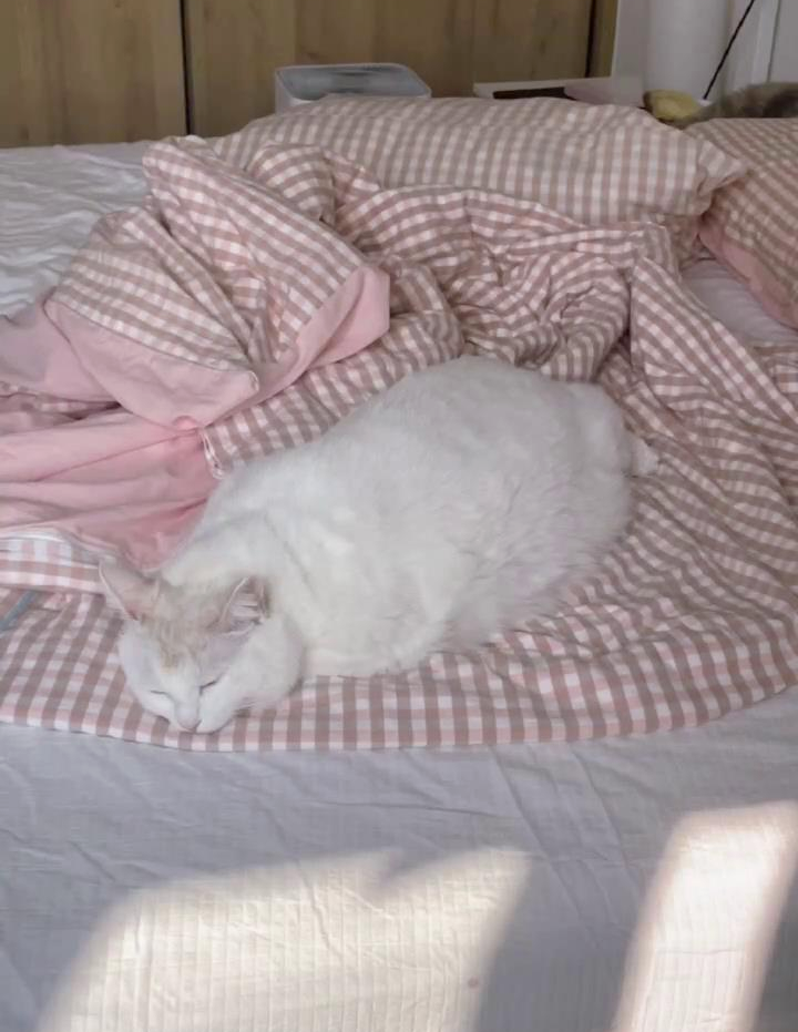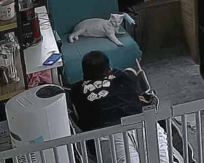 结果铲屎官不仅不道歉,还疯狂爆笑,但可怜的小猫咪不知道他在笑什么,还在悠闲的舔毛~