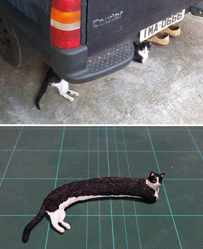 这时候姿势更好笑了,铲屎官一边疯狂耻笑气死猫,一边又是咔咔咔的一顿拍照!