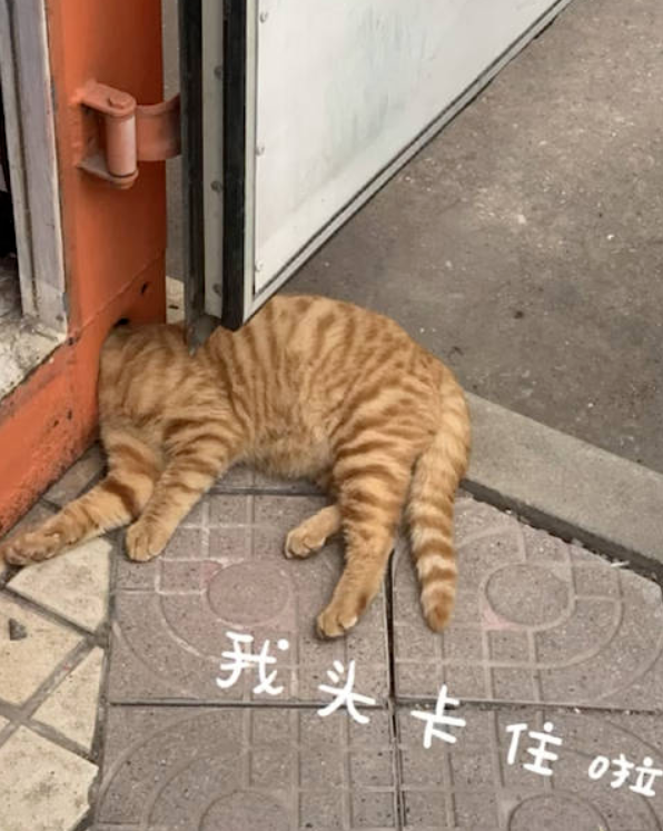就是它好奇,伸头进集装箱的底部,结果被卡住了...