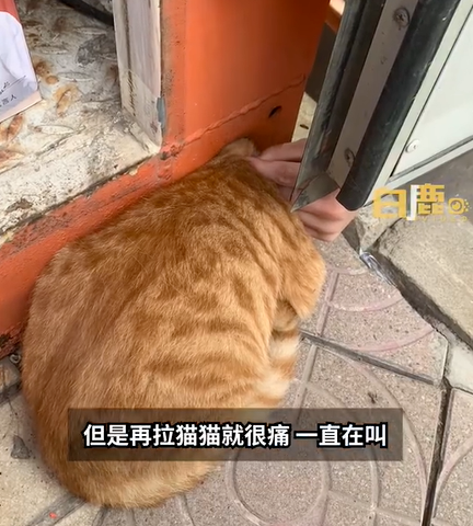 只要再往外拉,橘猫学长就痛得嗷嗷大叫...这就是吃得太肿的后果啊!