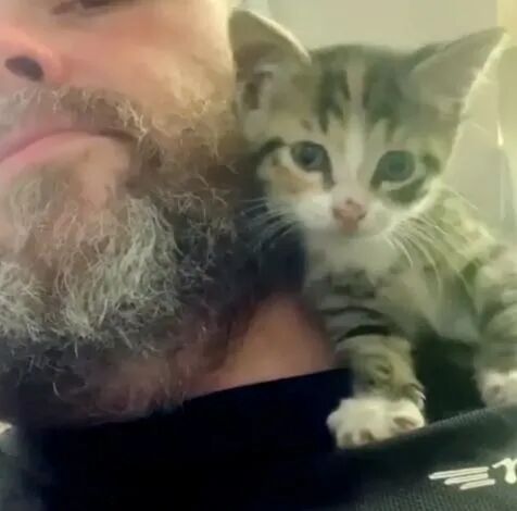 从没养过猫的大叔,把小猫放在肩上,小猫立马很自然地贴到了大叔脸上咕噜噜,完全把大叔拿捏了...