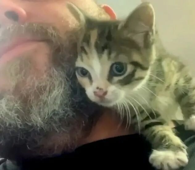 大叔看到这张毛茸茸的小脸,心都化了,于是决定将小猫留下,做它的铲屎官~