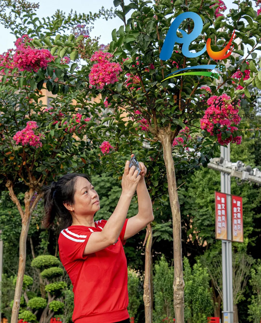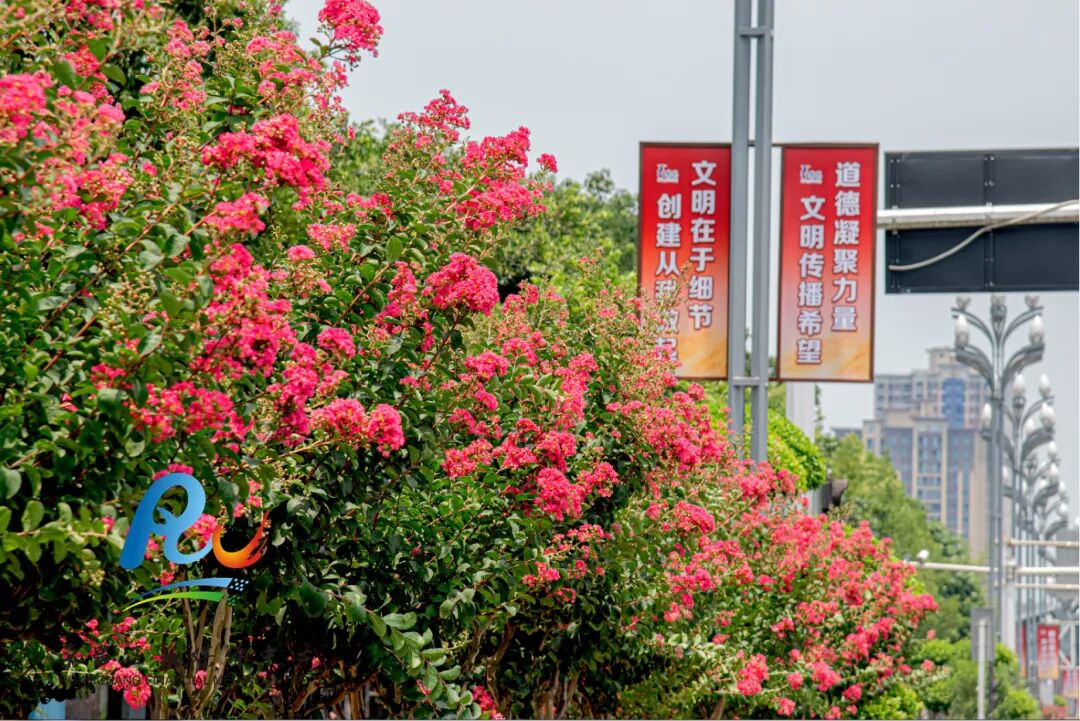 据悉,紫薇俗称“百日红”,耐干旱,是一种落叶灌木,花色丰富、色彩鲜艳,花期为每年的六月至九月。它不仅能吸入有害气体、净化空气,还能减少噪音,是城市绿化的优选树种。