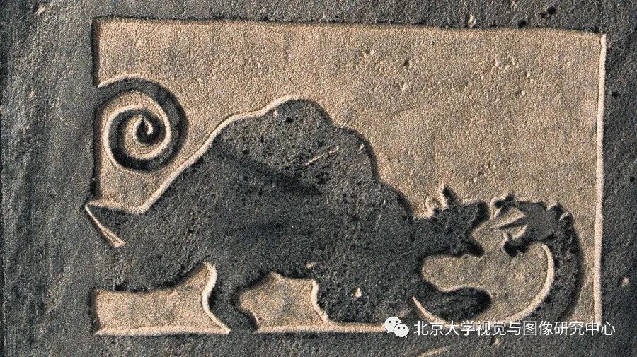 第一,玄武对称位置的另一边门柱上增加或减少图像。如米脂县官庄1986年M1左门柱MZ-018-02下格为玄武,右门柱MZ-018-03是玄武和云纹,样式来自同墓门扉中朱雀上部的云纹。整体而言,左右门柱、门扉使用同一模板,造成这种非对称的原因可能有两种,一是工匠漏刻,因个人疏忽而只在一边门柱雕刻云纹,而另一边门柱已在相同位置剔底而无法复刻。一是左、右门柱构建墓门时组合错误,但玄武与云纹同刻一格的例子仅发现这一例,因此可能性较小。