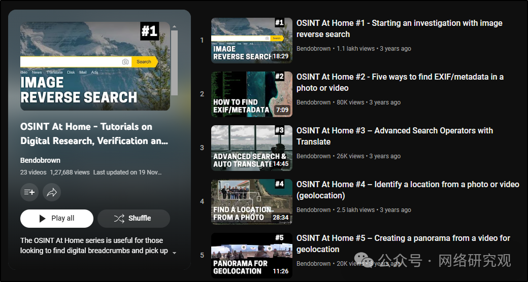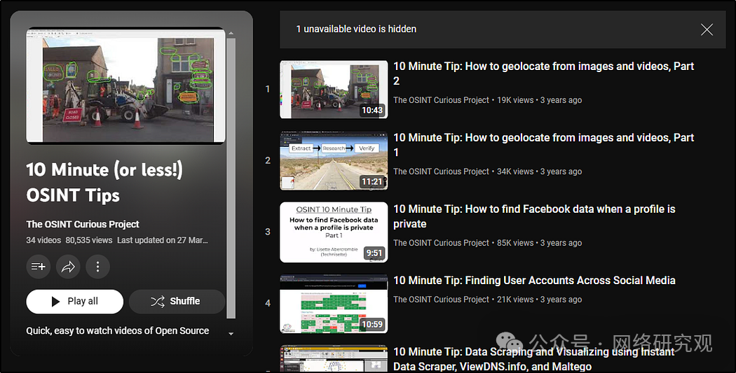 此播放列表非常适合那些希望通过简短、简洁的教程来提高其 OSINT 技能的人。