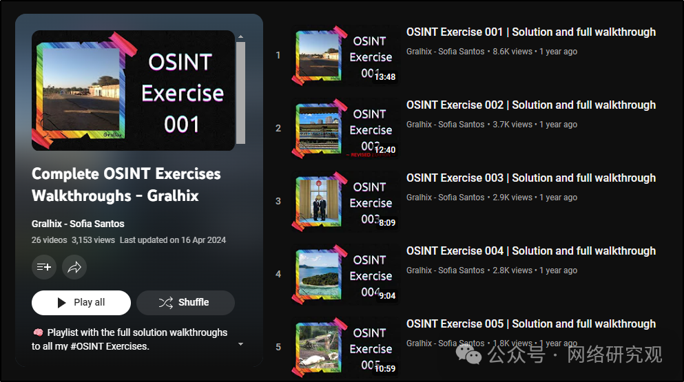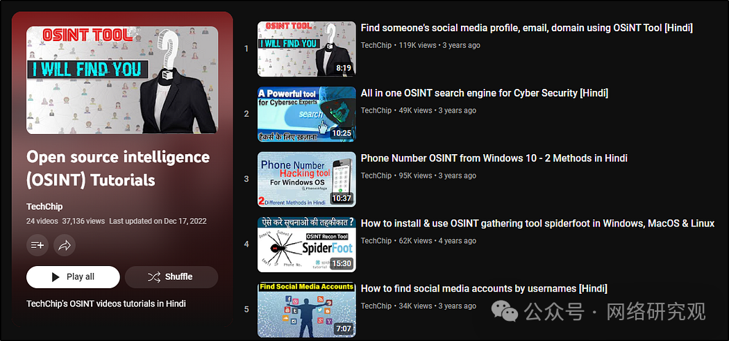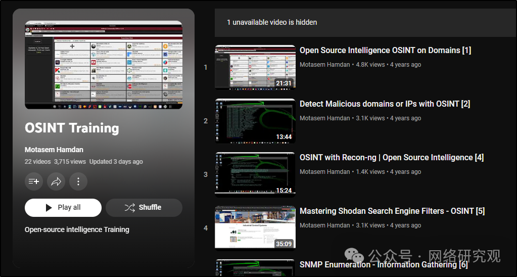 该播放列表非常适合那些寻求开源情报实践经验的人。