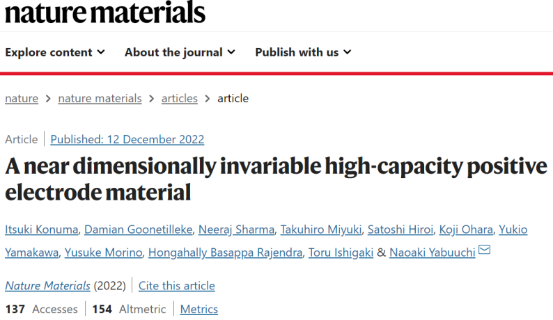 综上所述,本文证明了Li8/7Ti2/7V4/7O2在包括固态电解质在内的优化电解质中作为高容量、长寿命、高功率、安全的正极材料的可能性。通过合成具有更大表面积的纳米颗粒,改善了电极动力学。在常规电解液溶液中V离子的溶解度相对较高,使用浓电解质溶液和固态电解质能够明显缓解了此问题。同时,尺寸几乎不变特性对于固态电池至关重要,从而保证了固态电解质和电极材料之间的界面接触,且尺寸稳定性也适用于设计具有厚复合电极的高能电池,这些发现有助于开发用于下一代可充电锂电池的先进材料。Itsuki Konuma, Damian Goonetilleke, Neeraj Sharma, Takuhiro Miyuki, Satoshi Hiroi, Koji Ohara, Yukio Yamakawa, Yusuke Morino, Hongahally Basappa Rajendra, Toru Ishigaki, Naoaki Yabuuchi, A near dimensionally invariable high-capacity positive electrode material, Nature Materials, DOI:10.1038/s41563-022-01421-z