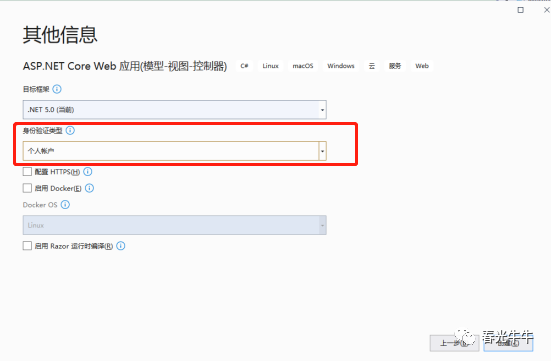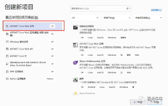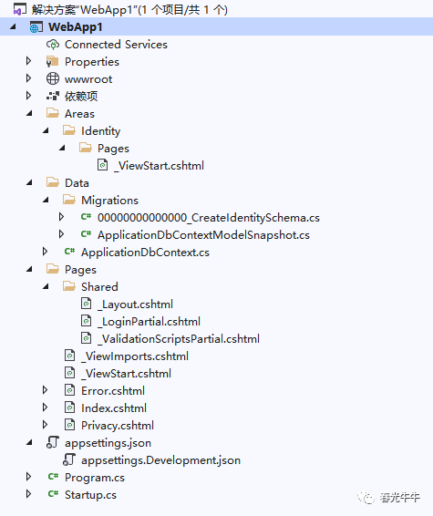 这里主要通过示例使用ASP.NET Core Identity,从Visual Studio中的ASP.NET Core Identity模板创建一个新项目。