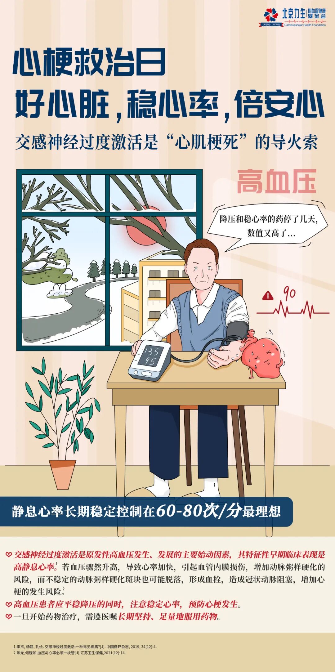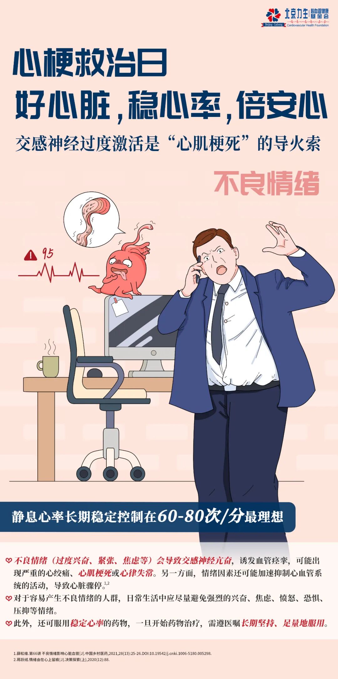 其实,我们的心脏是受交感神经和副交感神经共同支配的,当交感神经兴奋的时候就会导致心跳加快,心跳加快时,身体就会有不适感,出现如胸闷、喘不上气、胸口疼痛等症状,从而诱发心梗的发生。因此,可以说交感神经过度激活是心梗的导火索之一。