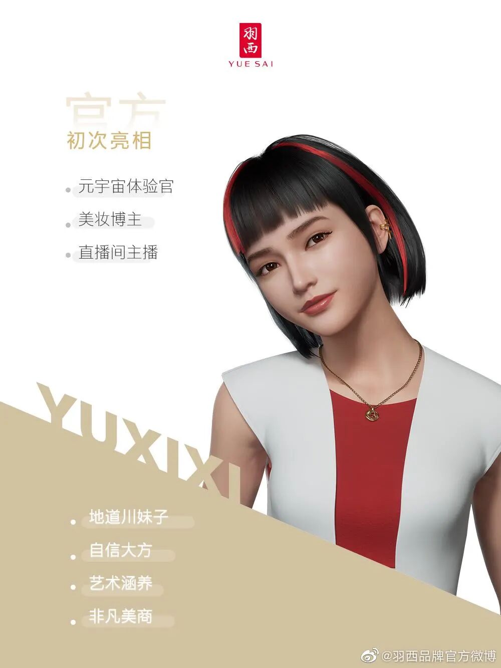 在社媒平台上,虚拟人物从诞生之日起就颇受关注。从虚拟人顶流洛天依到3天吸粉200万的柳夜熙,近两年品牌选择虚拟偶像代言的案例只增不减。有不少品牌开发出原创虚拟代言人,花西子官宣了同名代言人虚拟形象花西子,在第三季度,羽西也官宣了元宇宙体验官羽茜茜。