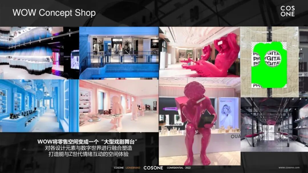 除了色彩以外,打造能与Z世代情绪互动的空间体验,促进消费者与品牌共生,也是重要一环。在运用情绪互动上,WOW Concept Shop将零售空间变成一个“大型戏剧舞台”对各设计元素与数字世界进行融合塑造,打造能与Z世代情绪互动的空间体验。NIKE BY YOU做到满足消费者的更多细分功能需求和偏好。