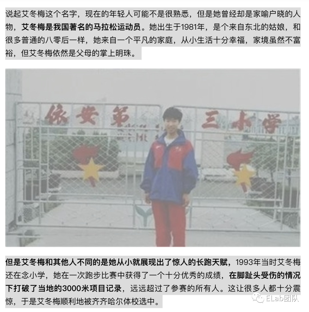 insert: '但是艾冬梅和其他人不同的是她从小就展现出了惊人的长跑天赋' , attribute: {