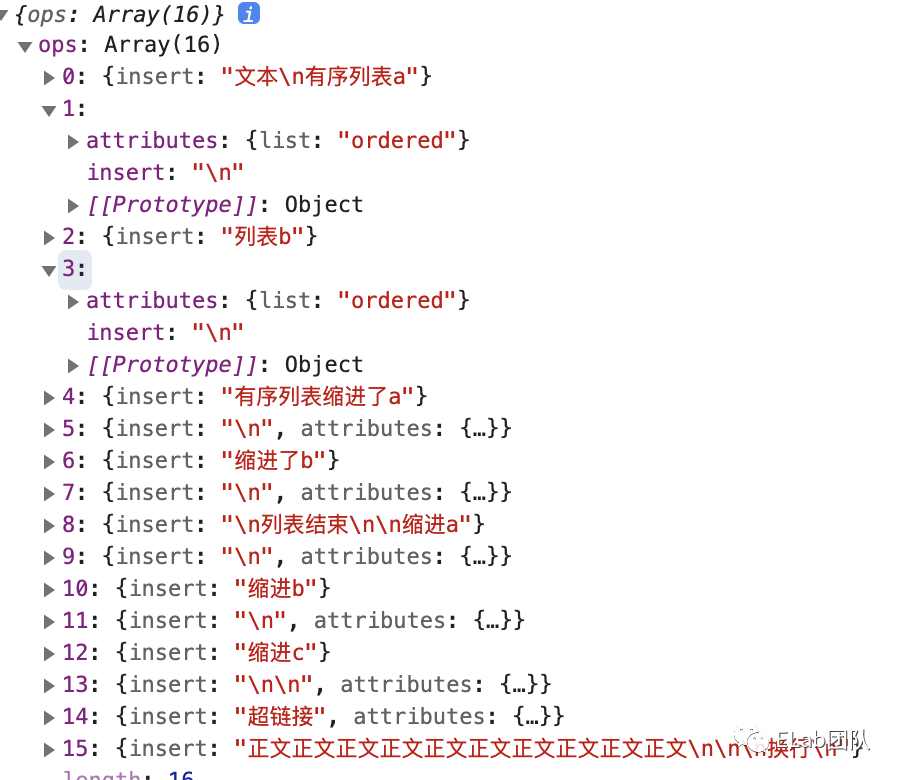 经过上面转化后原数据变成上图中的格式,每个 op 都含有相应的元数据,接下要做的就是解析这些 op,将其转化成 Element。