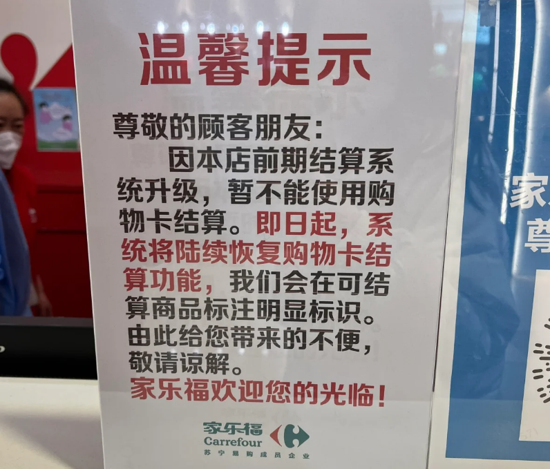 家乐福深陷倒闭传闻,人们担心购物卡中的钱花不出去,开始连续几天跑到家乐福扫货,连货架都抢空了。