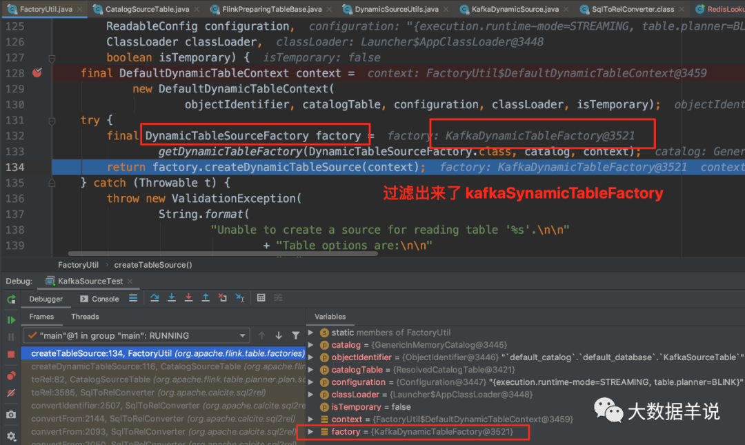 进入这个方法后,可以看到是使用了 FactoryUtil 创建了 DynamicTableSource。