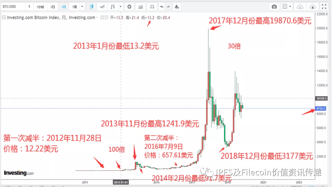1.从下跌幅度看,BTC熊市的跌幅在72%-84%之间,本次熊市的跌幅达到76%,已在底部区间;如果按84%的最大跌幅计算,价格差不多在1万美元。