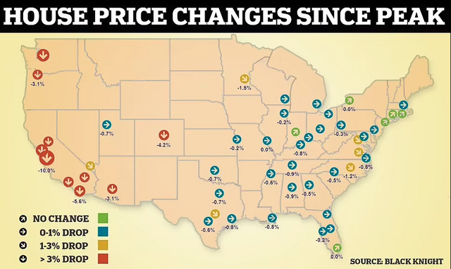 超过85%的房屋价格出现了下降,超过十分之一的房屋(主要是西海岸)的价格下跌了 4% 或更多。