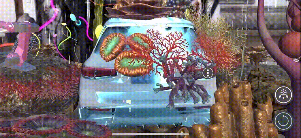 技术的普及牵动了其在创意领域的转化,AR增强现实作为一种新的形式介入艺术。早期使用AR进行创作的艺术家团体Manifest.AR通过“空间的批判性干预”方式展开了对此媒介的独特性探讨。从其2010年策划的We AR in MoMA 到2011年的威尼斯双年展的AR Intervention。虚拟的数码物从停滞的屏幕中解放,在这鲜活的现实世界进行连接,实现了在不同GPS坐标之间的数字游牧。2021年由NRW-Forum Düsseldorf发起AR双年展。观众只需通过app程序,便能在日常活动的社区公园内体验到幽灵般的想象和激进的事件。而在本土的艺术生产环境中,也已有一批先锋艺术家们展开了各自关于AR创作的实践。