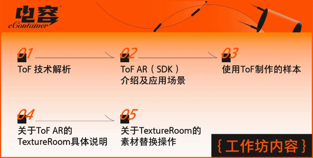 ToF 为Time of Flight的缩写,又称飞行时间法3D成像,以光的发射与反射时间换算深度信息并呈现。目前ToF Sensor广泛运于用智能手机设备,在空间、手势、骨骼等特征识别技术上具有更加精确的捕捉。此次工作坊使用索尼半导体解决方案公司开发的工具包“ ToF AR ”(SDK),帮助开发者们实现: