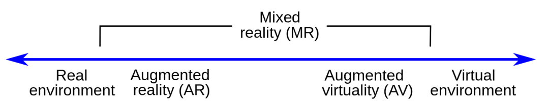 ⊙1994年保罗·米尔格拉姆(Paul Milgram)和岸野文郎(Fumio Kishino)提出现实 - 虚拟连续统(Milgram's reality-virtuality continuum),将真实环境和虚拟环境分别作为连续系统的两端。