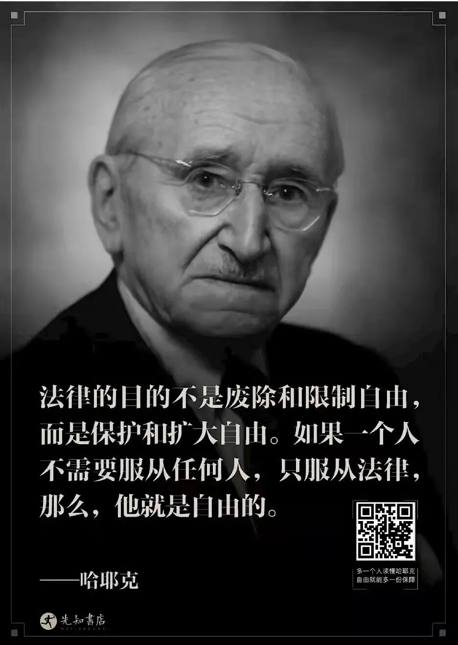 第四,法治之下才有真正的自由。直接承传了西方社会中自由主义的古典传统,尤其是洛克、康德、托克维尔(Alexisde Tocqueville)、阿克顿勋爵(Lord Acton)的自由主义思想理念,哈耶克在《通向奴役之路》中较详细地且反复地阐述了法治(the Rule of Law)、法治国(德语:Rechtsstaat)的理念以及自由与法治的关系。在第六章论述“计划与法治”时,哈耶克明确指出:“只有在自由主义的时代,法治才被有意识地加以发展,并且是这一时代最伟大的成就之一。法治不但是自由的保障,而且是自由的法律的体现(a legal embodiment)”。根据伏尔泰(Voltaire)乃至可能的康德的说法“如果一个不需要服从任何人而只服从法律,他就是自由的”这一理念,哈耶克认为,只有在法治之下,人们才有真正的自由。 对法治与自由的关系,哈耶克在在《通向奴役之路》中并没有做进一步的阐释。16年之后,在《自由宪章》中,哈耶克则更明确地阐释了二者的关系:“自由的意义仅仅是指人们的行动只受一般性规则的限制。……自由意味着,也只能意味着,我们的所作所为并不依赖于任何人或任何权威机构的批准,只能为同样平等适应于所有人的抽象规则所限制”。在法治之下才有自由,反映了“限制政府的权力以保障人民的自由”这一西方古典自由主义的传统理念。这也意味着自由主义就是宪政主义。对于这一点,后来哈耶克曾专门论述道:“由于法治意味着政府除非实施众所周知的规则外不得对个人实行强制,所以它构成了对政府机构的一切权力的限制,包括对立法机构权力的限制。”(作者注:同上,p. 205. 对于法治包含对立法机构的限制这一重要思想,哈耶克在《通向奴役之路》中有明确地论述:“法治因而就含有限制立法范围的意思:它把这个范围限制在公认为那种作为一般规则的正式法律,而排除那种直接针对特定人或是使任何人能够用国家的强权来达到差别待遇之目的立法。这即意味着,不是每件事都要由法律规定,相反,它是指国家的强制权力只能被用于事先由法律限制的情形之中,并按预先可知的将如何实用之的方式来行使。”)基于这一理念,哈耶克提出了它的自由社会之理想的第四个基本观点。 第五,法治的含义不是政府以法律来治理社会,而是且首先是政府的行为在法律约束之下。在《通向奴役之路》第六章“计划与法治”中,哈耶克明确指出:“撇开所有的技术细节不论,法治的意思就是指政府在一切行动中均受到事前规定并宣布的规则约束--这种规则使得一切个人有可能确定地预见到当权者(the authority)在给定情况中会如何使用其强制权力,并据此知识来规划自己的个人事务”。很显然,在20世纪30-40年代,哈耶克就明确地认识到,法治并不意指当权者或政府用法律作为手段来治理社会,即“ruleby law”,而首先且必定是政府及其领导人先遵守法律;换句话说,法治首先就意味着政府本身和任何公民一样要受预先制定的法律规则尤其是宪法所约束,这才是“the Rule of Law”(哈耶克在其著作中经常用大写这个词组来专门指称“法治”)。在这一章中,哈耶克还探究了计划经济中的法律与政府的合法性问题,明确指出,“如果说在一个计划社会中并不存在法治,这并不是说政府的行动将不是合法的,也不是说在这样的社会中不存在法律。这只是说,政府的强制权力的运用不再受事先规定的规则的限制和制约。法律能够……使任何专断行动的意旨和目的合法化。如果法律规定某一政府机构或当局可以为所欲为,那么该机构和当局所做的任何事都是合法的,但是,其行动肯定不是受法治原则的约束。通过赋予政府以无限的权力,可以把最专断的统治合法化,但这与法治没有任何关系”。 第六,“自由放任”理念是对自由与法治的最大危害。尽管哈耶克在《通向奴役之路》以及后来出版的《自由宪章》、《法、立法与自由》等著作中始终一贯地宣扬自由、法治和宪政的一些基本理念,主张要用预先制定的法律规则来约束政府,但是他并不是一个无政府主义者,更不能把他的经济和政治主张理解为在现代社会中政府要简单地“无为”(inaction)。在经济领域中,哈耶克多年来主张要采取私有企业制度,主张市场竞争体制,但他并不主张经济活动中的“自由放任”(即“laissezfaire”)。在《通向奴役之路》,第一章中,哈耶克就明确地指出:“也许对自由主义事业危害最大的,莫过于某些自由主义者基于某种经验主义的粗略法则的顽固态度,而以自由放任原则为甚”(作者注:同上,p. 71.)。之后,哈耶克有多次强调,不要把他对计划经济的批评与反对意见与教条主义的“自由放任”态度混淆起来:“自由主义的论点,是赞成尽可能地运用竞争力量作为协调人类活动的工具,但不是主张让事务放任自流。自由主义的论点基于这样的信念:只有能创造出有效的竞争,就是再好不过地引导个人努力的方法了。它并不否认,甚至还强调,为了使竞争有益地运行,需要一种精心考虑出来的法律框架……。”故通观哈耶克的《通向奴役之路》,可以确定地认为,哈耶克一生并不是主张无政府,也不是主张政府在管理经济、政治与社会事务上无所作为[作者注:在第6章,哈耶克还特别批判了那种主张“自由放任”原则的人的一个糊涂信念:“这种信念认为自由主义的典型态度是政府的无为。提出政府应当或不应当‘采取行动’或‘干预’这个问题,