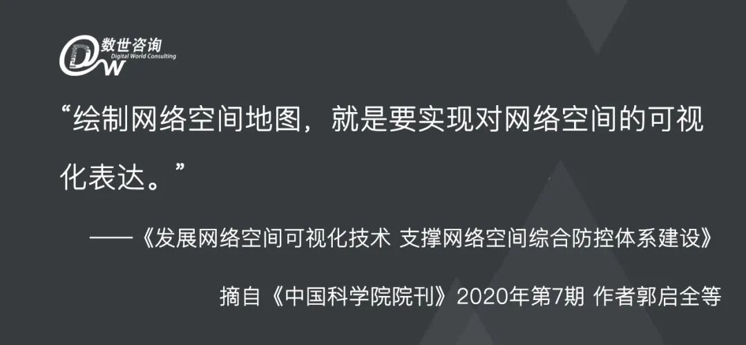 对国家、区域、行业的监管机构来说,资产测绘的重要场景之一是绘制网络空间地图,为“挂图作战”做准备。挂图作战是一种作战方式或工作方式,通过直观的图表形式将目标、方案、措施、流程、进展等方式呈现出来,从而达到“参战人员”认识一致、快速行动的目的。相比传统的地理空间作战,网络空间对抗更加隐秘复杂且瞬息万变,要想“挂图作战”在态势研判和协同行动中能起到显著效果,最首要也最直接的就是绘制网络空间地图,实现网络空间的可视化。