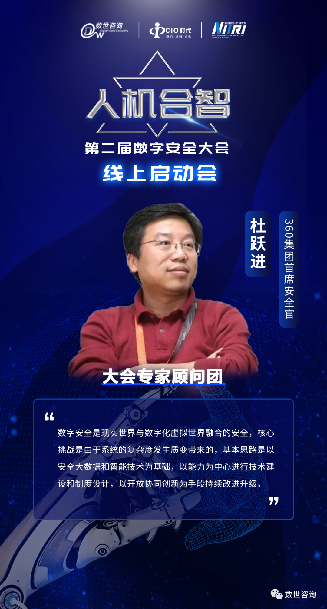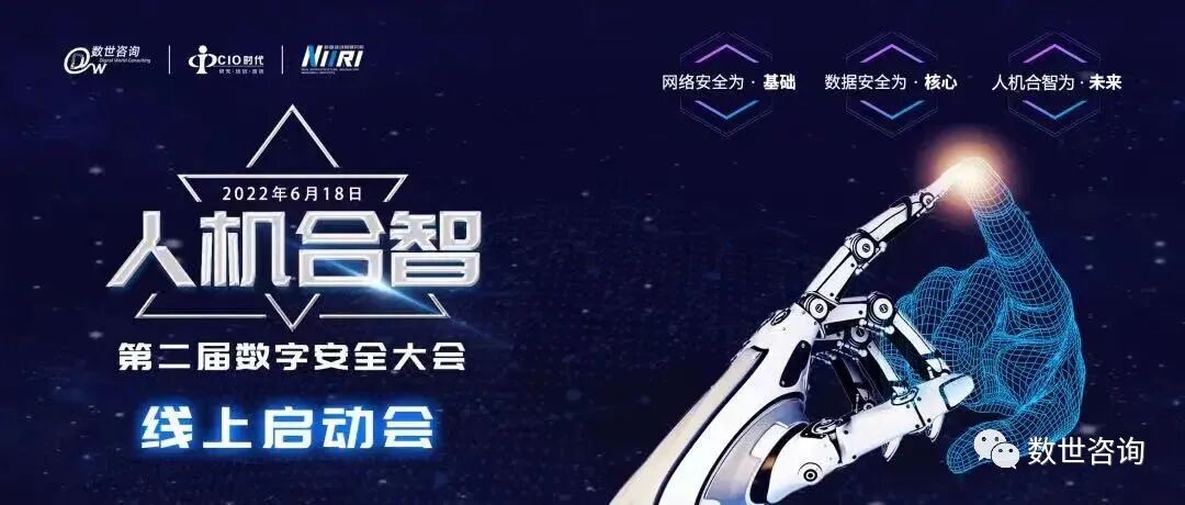 6月18日,由数世咨询、ClO时代主办,新基建创新研究院为智库支持单位的"第二届数字安全大会"线上启动会即将举行。届时,将邀请到众多业界专家空降直播间,围绕主题"人机合智",深度探讨,共同探寻数字安全的新趋势与新发展。