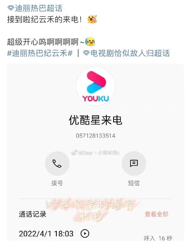 来电活动海报,图源优酷官博