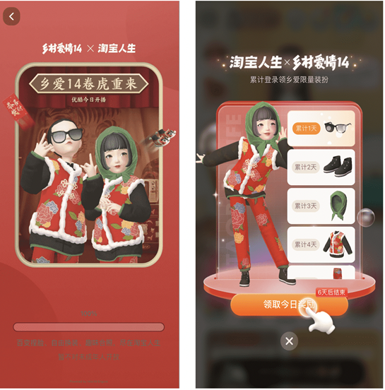 2022年1月底的播出的《乡村爱情14》,以一种颇具Z世代特质的方式,联合淘宝人生发起了“乡亲乡爱”淘宝人生捏脸大赛。这是模拟人生?还是什么RPG游戏?剧中艺人也在微博上展开点评互动,围绕过年氛围,成功打造了《乡爱》style的虎年主题,用年轻化玩法助力《乡爱》破圈。